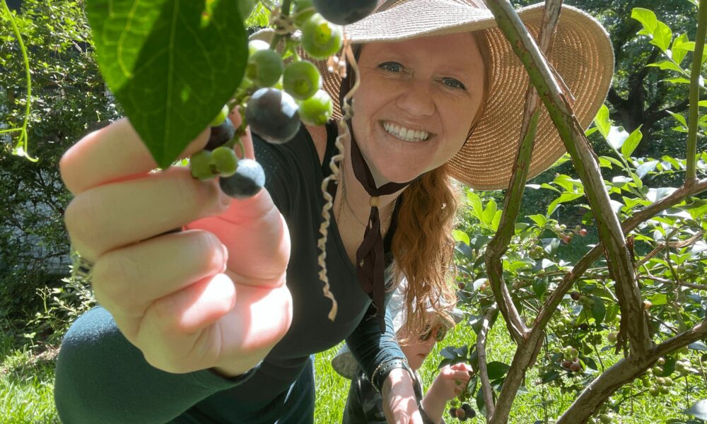 I have no idea what I’m known for. I think I’m known for being that crazy lady who lives in Savannah Georgia with all those animals. We ask people to drop off their trash pumpkins in the Fall for our pigs. We get hundreds of pumpkins so I quickly became known as the “pig-lady.” I didn’t mind the nickname. Mama Jane and her piglets, Diggory, Tallulah, and Belinda happily feasted on pumpkins for weeks. Arthur’s known as the homestead lady’s husband, but he plays a much bigger role on the homestead than that. His commitment to his family and our home is indescribable. The homestead simply wouldn’t run smoothly at all without him. He can be found milking the goat every morning, fixing what needs fixing, slinging 50 lb feed bags, dropping a hay rounder with the tractor, picking blueberries while on conference calls, and more, all while drinking kombucha beer (well not during the work call part).