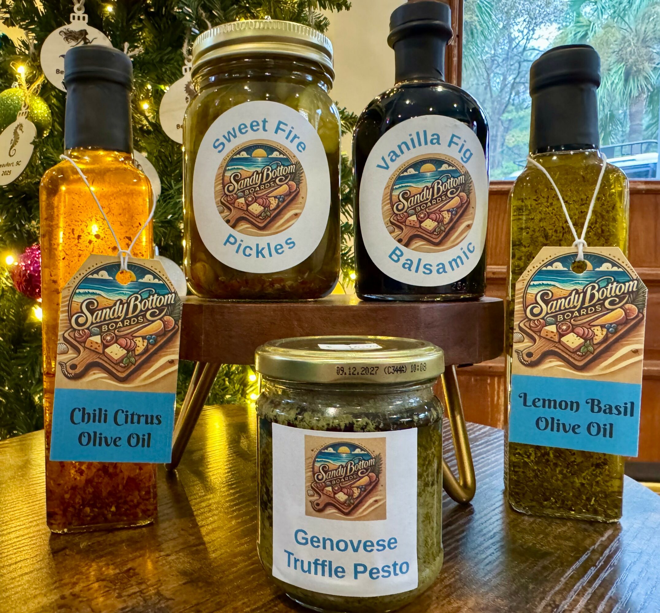 At our storefront in the Newpoint Plaza, we carry an amazing array of artisan cheeses from a company out of Wisconsin called Cheese Brothers. We also have different types of olive oil blends, balsamic, Genovese truffle pesto, local raw honey and sourdough.