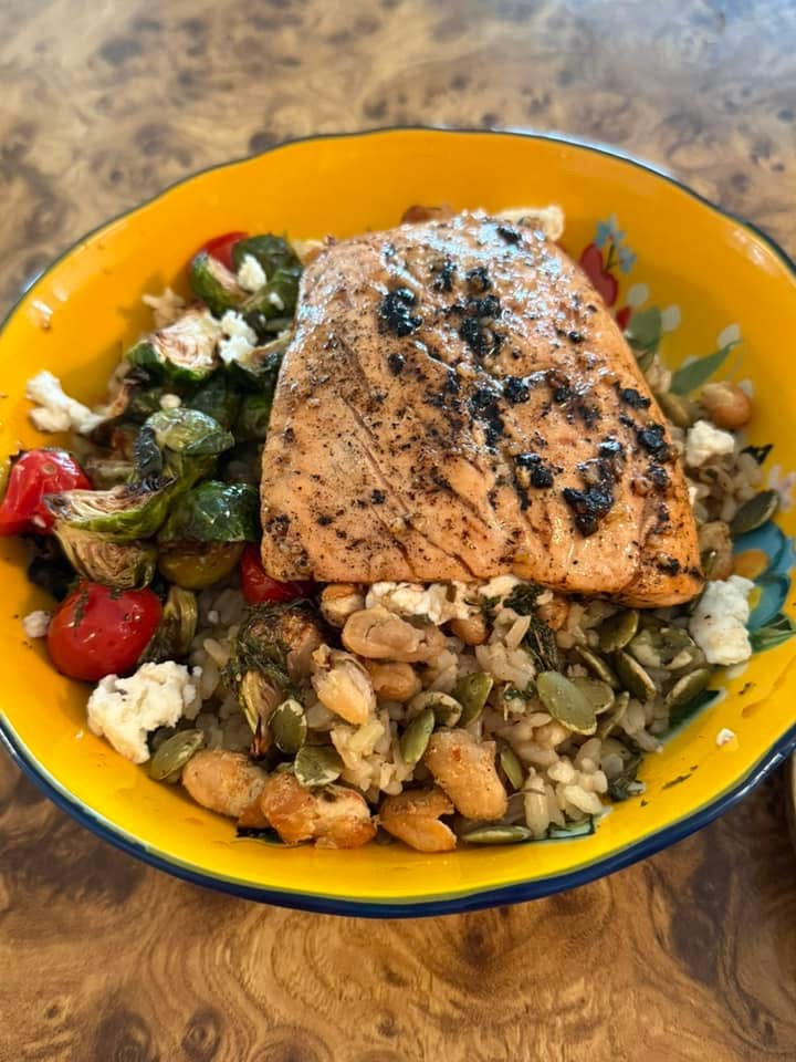 - Gracious Grains Bowl (seasonal roasted vegetables on a bed of grains, garnished with crumbly cheese, nuts and/or dried berries and drizzled with a house-made vinaigrette. Add your choice of protein for an upcharge: $11