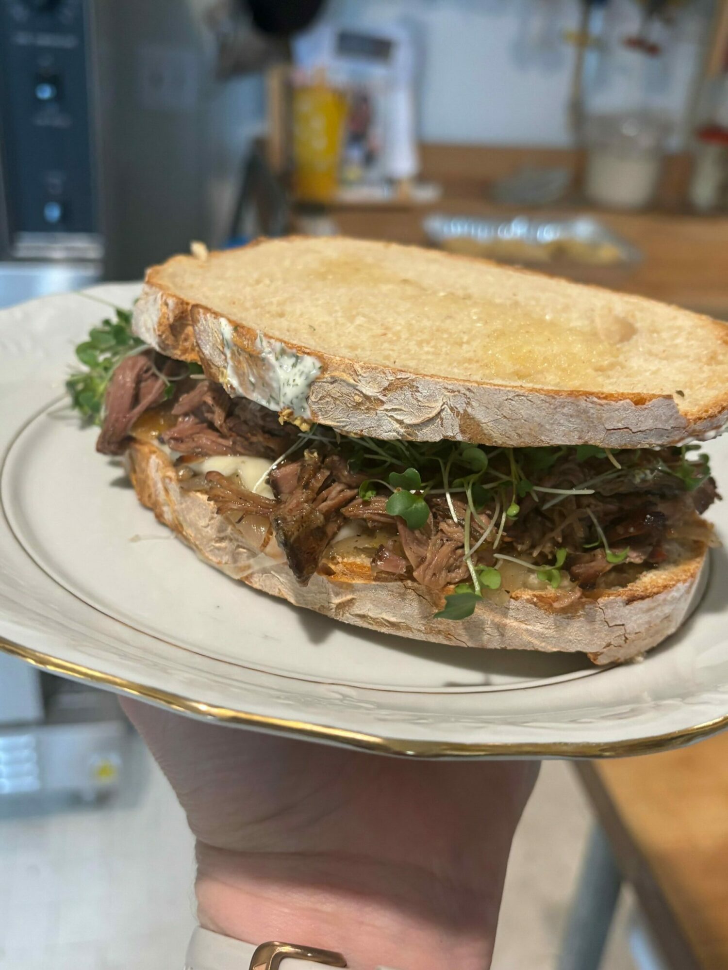 - The Heathcliff (our slow roasted beef sandwich with house-made sourdough, melted havarti cheese and Vidalia onion jam: $11