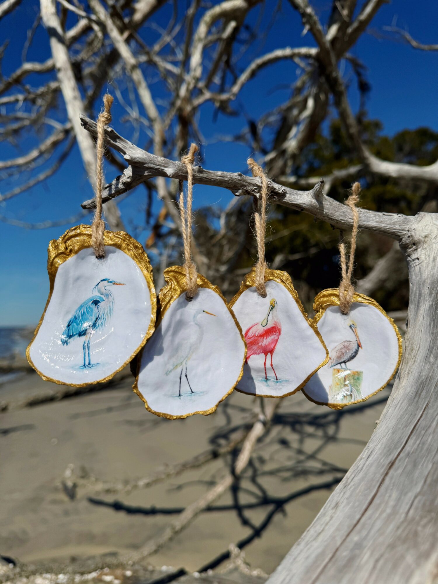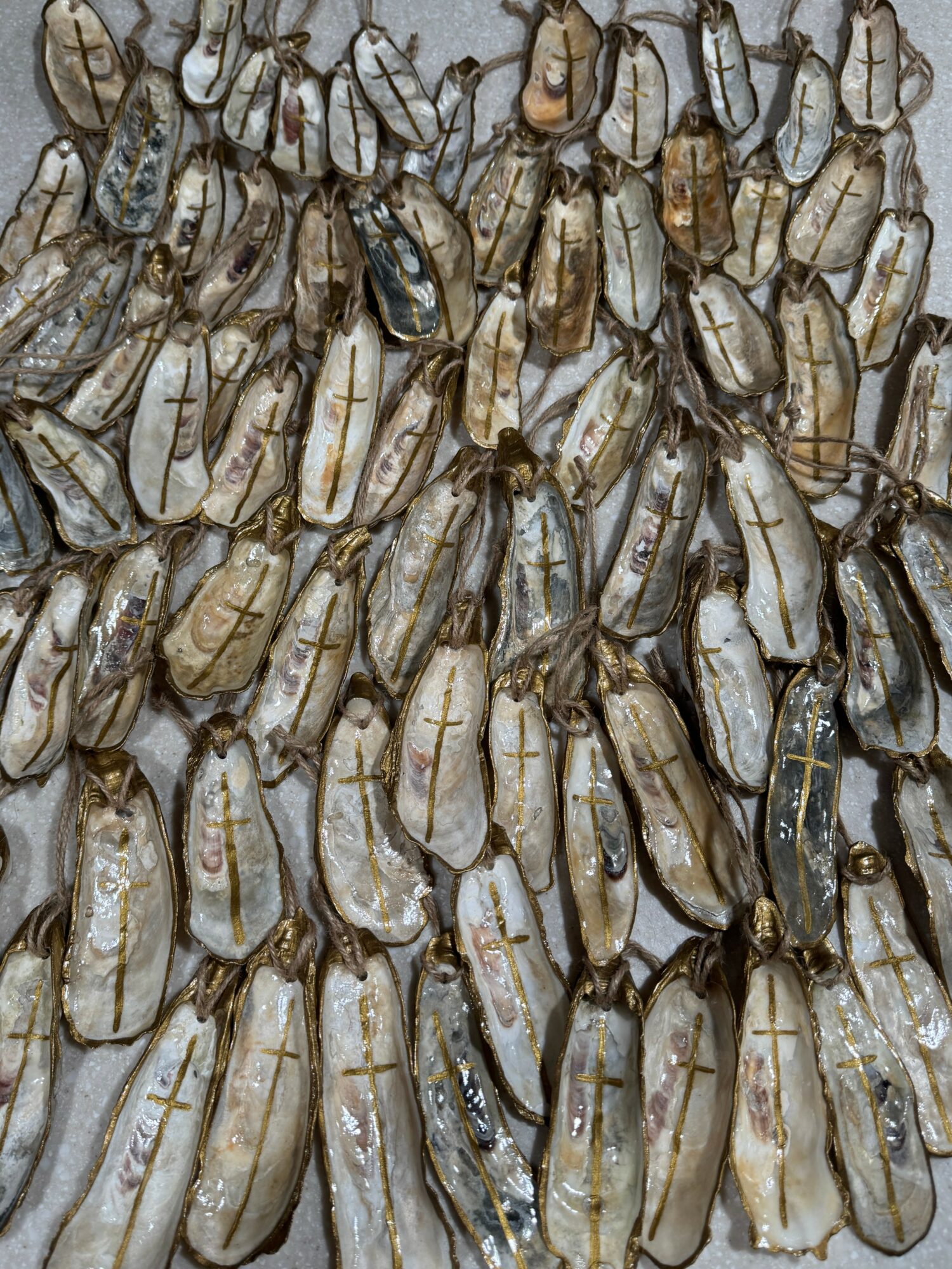 I started selling oyster art in 2022 after a family friend of ours became very ill and sadly passed away, and we were trying to raise money to help cover hospital bills. That was around Christmas, and to my surprise, people absolutely loved the first ornaments I created. The response was overwhelming, and that’s really how Low Tide Oysters came to life. This Spring marks three years of officially being Low Tide Oysters, which is mind-blowing!