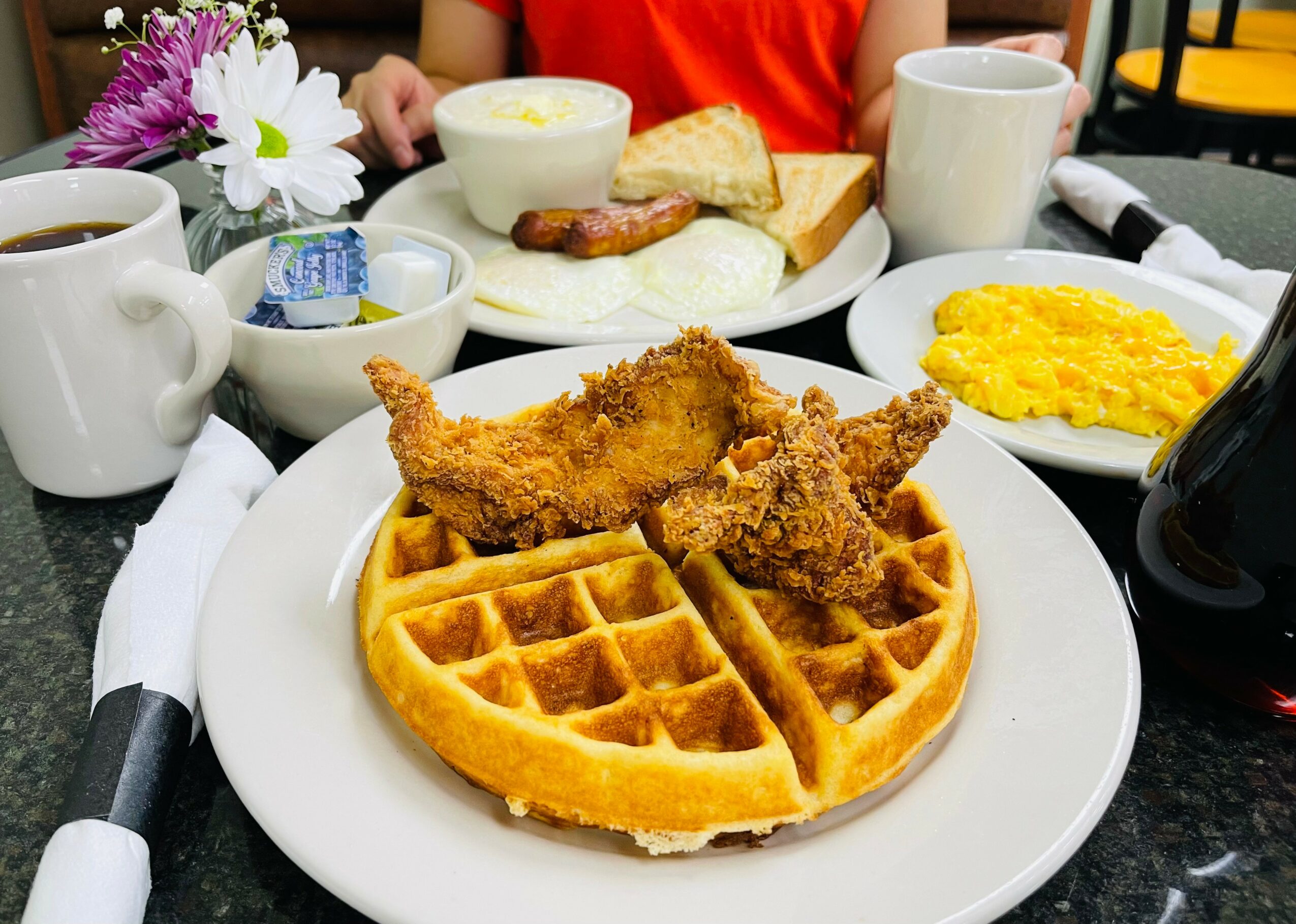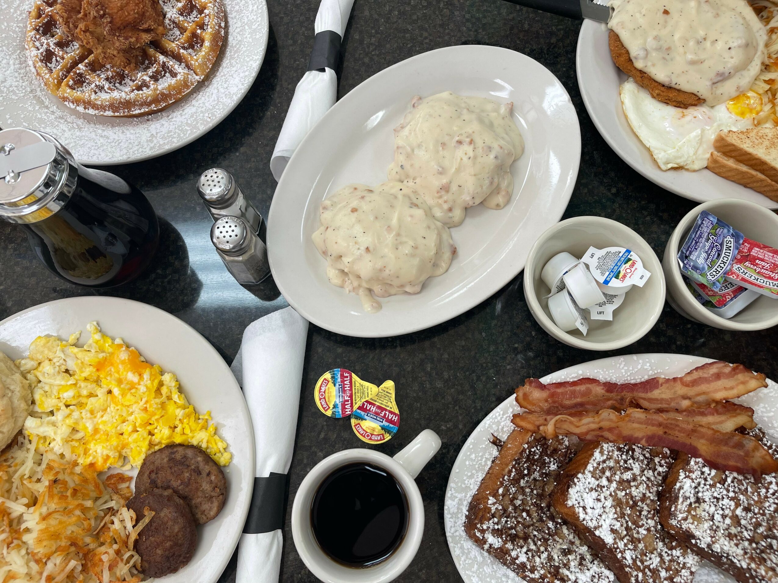 Our breakfast and lunch restaurant serves up classic comfort with a hometown feel. We specialize in all-American breakfast favorites like eggs, crispy bacon, and hearty plates made to start your day right. Alongside the classics, we proudly offer Southern-style breakfast staples, including shrimp and grits, fluffy biscuits smothered in rich gravy, and other down-home favorites full of flavor.